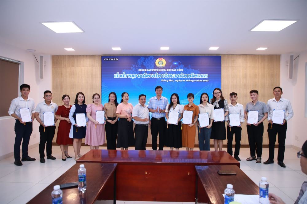 Thực hiện kế hoạch của Công đoàn Trường Đại học Lạc Hồng về việc đẩy mạnh công tác phát triển Đoàn viên Công đoàn năm học 2022-2023, sáng ngày 29/8/2023, Công đoàn Trường Đại học Lạc Hồng đã tổ chức lễ kết nạp đoàn viên Công đoàn mới cho 16 đồng chí NGNLĐ mới tuyển dụng.