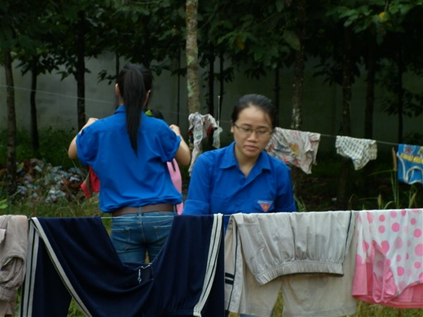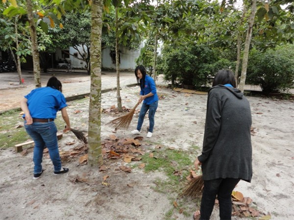 Toàn đội dọn dẹp vệ sinh quanh nhà tình thương