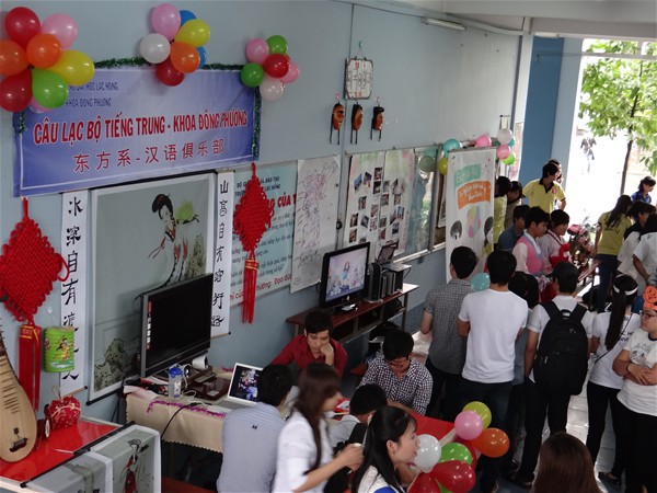 Các câu lạc bộ trong Khoa tổ chức các gian hàng trưng bày giới thiệu hoạt động của  4 ngành diễn ra rất sôi nổi, thu hút sự quan tâm chú ý của các tân sinh viên. Các tân sinh viên được tặng thư pháp, chụp hình trong trang phục truyền thống Hàn, Nhật, Trung và cùng thưởng thức những tiết mục văn nghệ đặc sắc mang sắc màu Đông Phương từ các anh chị sinh viên khóa trên. Các bạn tân sinh viên đã có cơ hội để tìm hiểu ngành nghề chọn theo học cũng như giao lưu, học hỏi, trao đổi với bạn mới và các anh chị khóa trên.