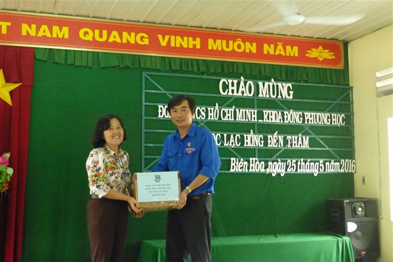 Nhằm chào mừng ngày quốc tế thiếu nhi 1/6, được sự cho phép của Nhà trường, Lãnh đạo khoa và Đoàn thanh niên trường, ngày 25/5/2016 Đoàn thanh niên Khoa Đông phương học thực hiện chương trình “Vòng tay nhân ái” tổ chức thăm hỏi, tặng quà và giao lưu tại Trung tâm nuôi dạy trẻ khuyết tật tỉnh Đồng Nai. Đây là trung tâm bảo trợ và nuôi dạy những trẻ em bị khuyết tật câm, mù và điếc, địa chỉ Trung tâm: xã Hoá An, TP. Biên Hoà, tỉnh Đồng Nai.