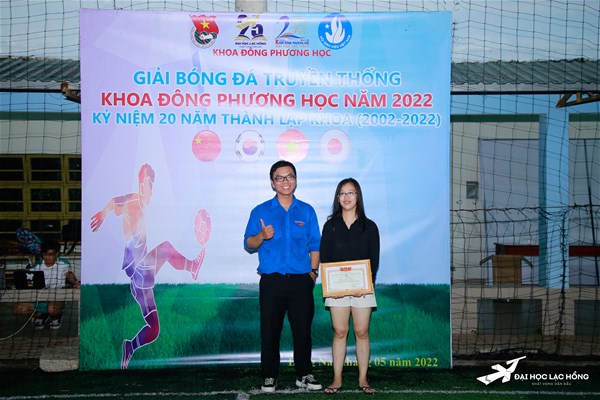 Giải đấu năm nay bắt đầu từ ngày 4/5/2022 đến nay đã trải qua 10 ngày thi đấu trong tinh thần thể thao, đoàn kết. Sau 10 ngày tranh tài, ngày 13/5/2022 ngay sau khi trận chung kết tại sân Bóng đá GDTC trường Đại học Lạc Hồng kết thúc, BTC giải bóng đá đã tổ chức Lễ bế mạc và trao giải cho các đội bóng và các cá nhân có thành tích cao tại giải thi đấu bóng đá Sinh viên Khoa Đông Phương học năm 2022.