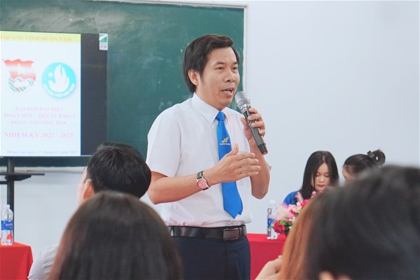 Phát biểu chỉ đạo tại Đại hội, thay mặt Lãnh đạo Khoa, TS. Nguyễn Hữu Nghị đã biểu dương BCH Đoàn – Hội Sinh viên Khoa trong nhiệm kỳ vừa qua đã có những hoạt động nổi bật, đã kết hợp được hoạt động Đoàn với học tập tạo ra sự hài hòa giữa học tập và hoạt động, lấy hoạt động hỗ trợ cho học tập, đồng thời thầy chỉ rõ cần phát triển thêm các kĩ năng mềm và kỹ năng hoạt động đoàn cho đoàn viên - sinh viên trong Khoa.