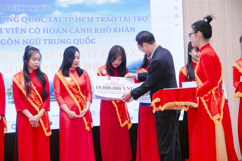 Trong chuyến thăm và làm việc lần này, đại diện Tổng Lãnh sự quán nước Cộng hòa Nhân dân Trung Hoa tại TP. Hồ Chí Minh trao tặng 100,000,000 VND (một trăm triệu đồng) cho “Quỹ học bổng sinh viên có hoàn cảnh khó khăn ngành Ngôn ngữ Trung Quốc LHU”.