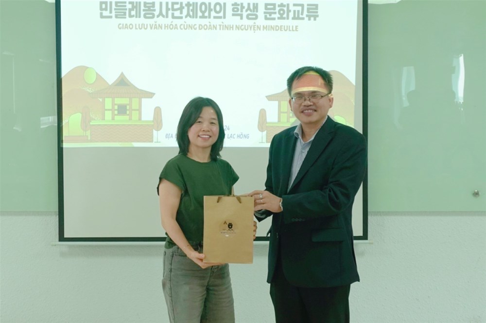 Tặng quà lưu niệm đến Đoàn tình nguyện Mindeulle Hàn Quốc