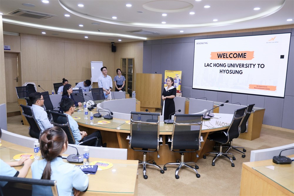 Tại buổi tham quan, Lãnh đạo Công ty TNHH HYOSUNG VIETNAM đã có buổi nói chuyện thân mật với các bạn sinh viên ngành Hàn Quốc học. Ngoài những giới thiệu sơ lược về quá trình hình thành và phát triển của doanh nghiệp, Lãnh đạo công ty còn cho biết, hiện tại công ty đang có nhu cầu tuyển dụng rất nhiều nhân sự biết tiếng Hàn, đồng thời bày tỏ mong muốn sinh viên ngành Hàn Quốc học, Đại học Lạc Hồng nộp hồ sơ xin việc.