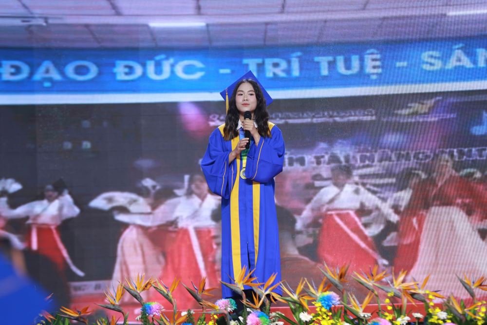 Tân Cử nhân Nguyễn Thị Yến Linh - Lớp 20DT112 - Đại diện tập thể sinh viên phát biểu cảm nghĩ