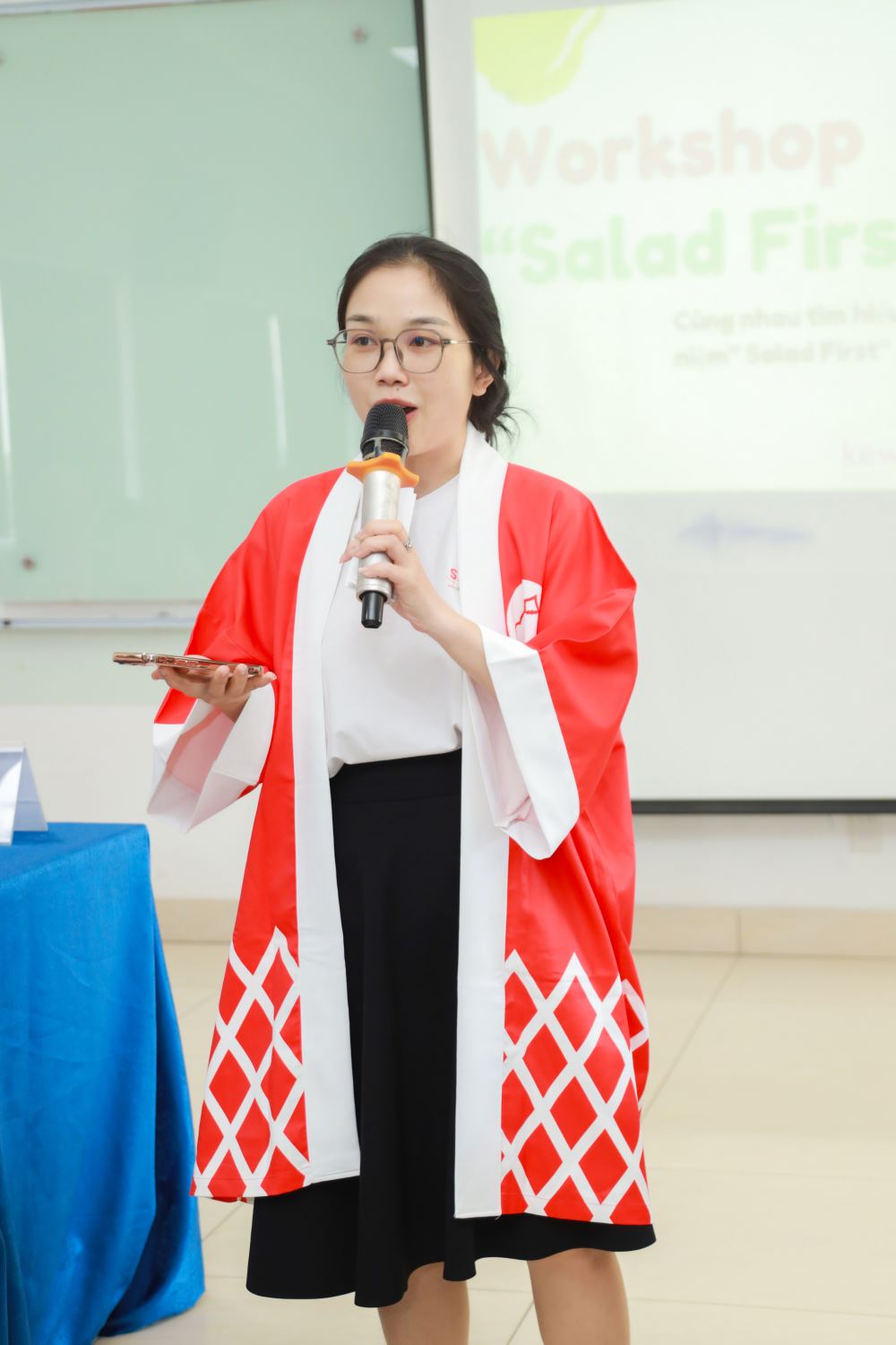 Điểm nhấn đặc biệt của chương trình là phần workshop làm salad shake đầy thú vị, nơi các bạn sinh viên được tự tay chế biến món salad theo phong cách riêng, sáng tạo và lành mạnh. Qua hoạt động này, thông điệp về tầm quan trọng của việc ăn rau, cân bằng dinh dưỡng trong cuộc sống hiện đại đã được truyền tải một cách sinh động và gần gũi.