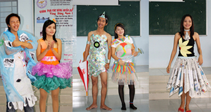 Bên cạnh phần sân khấu hóa hai bài thuyết minh trên, các bạn sinh viên còn cho khán giả thấy khả năng sáng tạo của mình qua những bộ thời trang đầy ấn tượng với chủ đề “Hãy bảo vệ môi trường”. Chất liệu các bạn sử dụng để tạo nên tác phẩm là ni lông, ống hút, đĩa CD, giấy báo... Không điêu luyện trong bước đi cũng như không tinh tế trong thiết kế trang phục nhưng với bộ sưu tập của mình, các bạn đã làm cho bầu không khí trong phòng F301 thêm vui tươi và ngập tràn màu sắc.