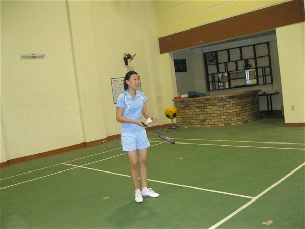Tay vợt Thanh Hằng của Khoa Ngoại Ngữ đang thi đấu