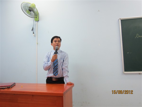 Thầy Ts. Huỳnh Đức Lộng phát biểu trao đổi với các tân sinh viên khóa 2012