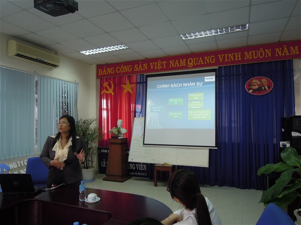 Tại Công Ty, sinh viên đã được Cô Phạm Lê Lài chuyên viên đào tạo - tuyển dụng giới thiệu lịch sử hình thành, các chế độ chính sách tại công ty. Đây là chuyến đi thực tế thực sự bổ ích, giúp cho sinh viên học tập về tác phong làm việc, kỷ luật lao động, tích lũy kinh nghiệm phỏng vấn - xin việc... góp phần rút ngắn khoảng cách giữa lý thuyết và thực tiễn.