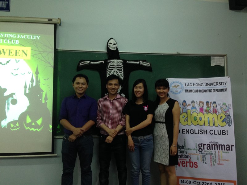 Nằm trong chuỗi các hoạt động của năm học 2016-2017, chiều ngày 22-10 tại phòng D203 cơ sở 2 - ĐH Lạc Hồng, Khoa Tài chính – Kế toán đã tổ chức buổi sinh hoạt CLB tiếng Anh chủ đề “HALLOWEEN” dành cho các bạn sinh viên. Tại đây, hơn 30 bạn đã hưởng ứng nhiệt tình, sôi nổi thảo luận các câu hỏi cũng như tham gia nhiều trò chơi bổ ích, thú vị liên quan đến chủ đề “HALLOWEEN”. Với sự hỗ trợ tận tâm của đội ngũ giảng viên của Khoa TC-KT, các bạn sinh viên tham gia đã có một buổi chiều thứ bảy được thỏa thích trao đổi và thể hiện khả năng nói tiếng Anh. Sau buổi sinh hoạt, các bạn tham dự CLB đã có cơ hội làm quen với nhiều từ vựng, cấu trúc tiếng Anh mới,… và đặc biệt là tự tin hơn trong việc giao tiếp bằng tiếng Anh. Khoa Tài chính kế toán sẽ tiếp tục  tổ chức nhiều hơn nữa các sân chơi bổ ích để các bạn sinh viên có thể sử dụng tiếng Anh một cách tốt nhất.
