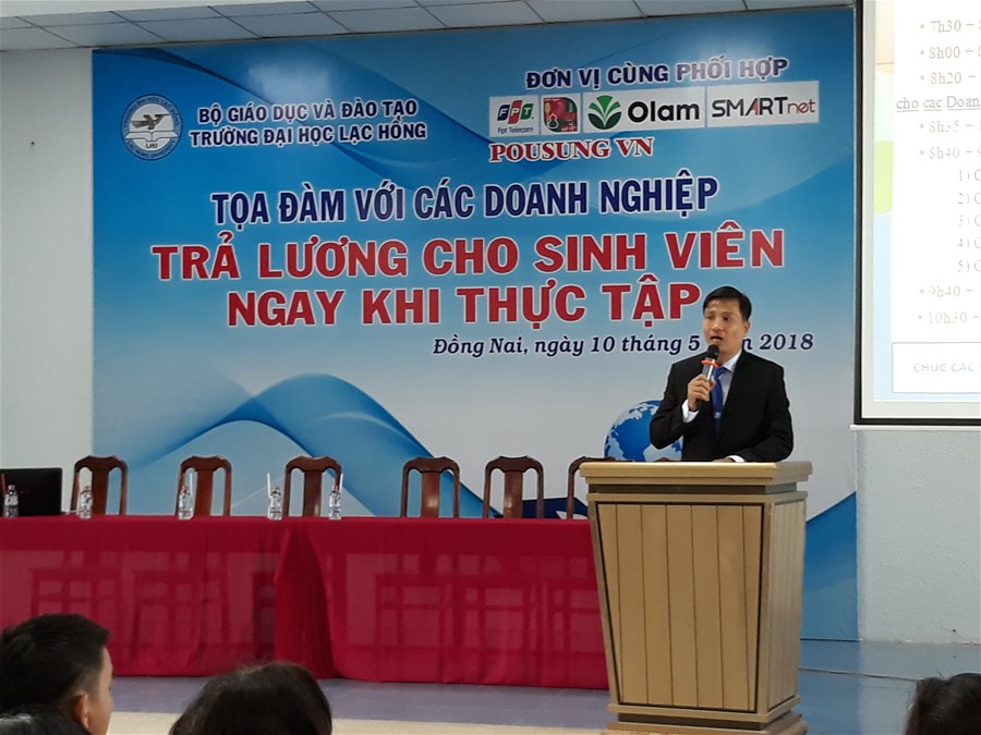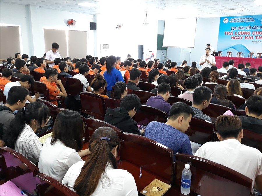 Sáng ngày 10/5/2018, tại Hội trường E501 Trường ĐH Lạc Hồng phối hợp cùng Công ty Olam Việt Nam, Công ty Cổ Phần Viễn Thông FPT, Công ty PouSung Việt Nam, Công ty TNHH Smartnet, Công ty TNHH Thực Phẩm Thái Sơn tổ chức “Buổi tọa đàm với các doanh nghiệp trả lương cho sinh viên ngày khi thực tập”. Hơn 400 sinh viên các Khoa Tài chính-Kế toán, Quản trị, Cơ điện, Ngôn Ngữ Anh và Khoa Môi trường tham dự, tại đây các bạn được chia sẻ kinh nghiệm để có kỳ tham gia thực tập hiệu quả nhất và được phỏng vấn trực tiếp để tham gia thực tập hưởng lương tại các doanh nghiệp nêu trên, sau đây là hình ảnh buổi Tọa đàm: