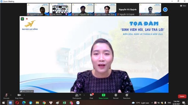 Dịch Covid-19 vẫn đang diễn biến hết sức phức tạp, Nhà trường đã có những điều chỉnh về lịch trình năm học, cũng như các phương pháp giảng dạy phù hợp. Tuy nhiên, vẫn không thể tránh khỏi những lo lắng từ phía phụ huynh và sinh viên. Để giải đáp những vướng mắc này, trường ĐH Lạc Hồng tổ chức buổi tọa đàm “Sinh viên hỏi LHU trả lời” vào 19h00 ngày 26/8/2021.Tham dự buổi tọa đàm có sự tham dự của Ban giám hiệu, BLĐ Khoa, BLĐ các phòng ban.