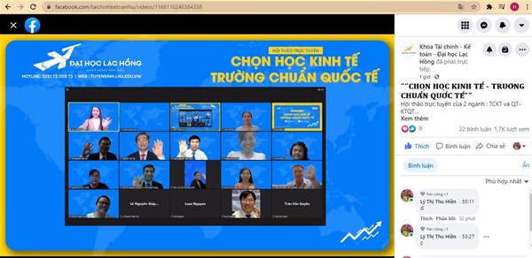 Nhằm định hướng nghề nghiệp, cũng như tư vấn lựa chọn ngành nghề phù hợp với năng lực của học sinh. Tối ngày 01/9/2021, Trường Đại học Lạc Hồng tổ chức Hội thảo trực tuyến với chủ đề “Chọn học kinh tế - Trường chuẩn Quốc tế”.
