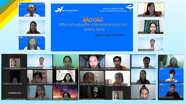 Nhằm ghi nhận kết quả, cũng như những khó khăn của các bạn sinh viên trong quá trình học tập, nghiên cứu Khoa học trong giai đoạn hiện nay. Vào lúc 19h00, ngày 15 tháng 9 năm 2021, Khoa Tài chính - Kế toán tổ chức Báo cáo tiến độ nghiên cứu khoa học SV lấn 1 đối với khóa 2018 thông qua nền tảng Zoom.