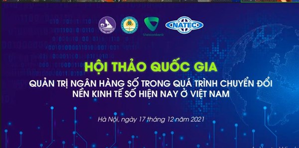 Quá trình chuyển đổi số trờ thành nhu cầu tất yếu giúp cho các ngân hàng vượt lên thách thức, tạo lợi thế cạnh tranh, chủ động thích ứng và phát triển bền vững trong bối cảnh Cách mạng công nghiệp lần thứ tư và sự nổi lên của kinh tế số. Để nhận thức được tầm quan trọng của việc chuyển đổi số cũng như xu thế phát triển ngân hàng số, từ đó chủ động nắm bắt kịp thời, tận dụng hiệu quả các cơ hội để triển khai thành công chuyển đổi số, giúp các ngân hàng phát triển bền vững. Vì vậy, vào lúc 13h00, ngày 17 tháng 12 năm 2021, Hội thảo khoa học Quốc gia chủ đề quản trị ngân hàng số đã được Học viện Tài chính đồng chủ trì tổ chức cùng UBND TP Hạ Long, Ngân hàng TMCP Ngoại Thương, NATEC. Hội thảo gồm hai hình thức trình bày trực tuyến và trình bày trực tiếp tại Hội trường A1 của Học viện Tài Chính và đầu cầu TP Hạ Long, tỉnh Quảng Ninh.