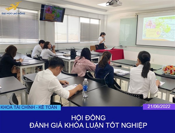 Vào lúc 7h30, sáng ngày 21 tháng 6 năm 2022, Khoa Tài chính – Kế toán tổ chức Hội đồng Đánh giá Khóa luận tốt nghiệp cho hệ hoàn chinh, liên thông. Hội đồng đánh giá năm nay gồm 3 tiểu ban tại phòng B401, B402, B403.