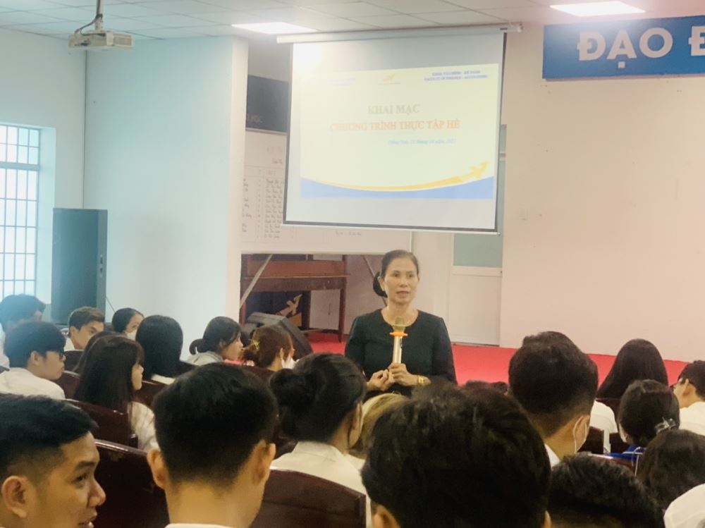 Buổi khai mạc đã thu hút sự tham gia đông đảo của sinh viên khoa Tài chính Kế toán. Trong buổi khai mạc, các giảng viên và cán bộ quản lý đã giới thiệu chi tiết về chương trình thực tập hè, đồng thời trình bày những thông tin quan trọng về quy định, thời gian, địa điểm và các yêu cầu cần thiết cho quá trình thực tập.