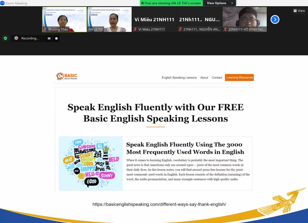 Ngày 22/6/2023, CLB Tiếng Anh (English Club) khoa Tài chính – Kế toán đã tổ chức thành công buổi sinh hoạt trực tuyến qua webinar với chủ đề "How to Boost Your Speaking English Skill" (Cách nâng cao kỹ năng nói tiếng Anh). Buổi hội thảo này đã thu hút sự quan tâm và tham gia của rất nhiều thành viên trong CLB, cũng như những người yêu thích tiếng Anh và mong muốn cải thiện khả năng giao tiếp của mình.