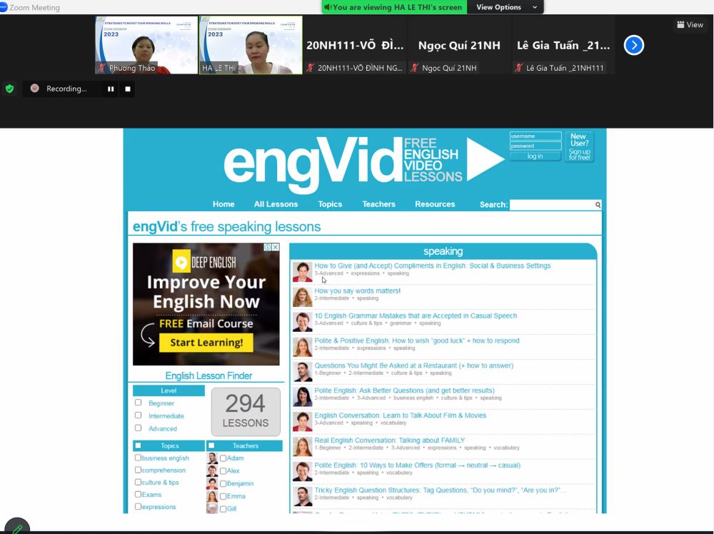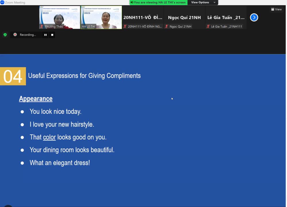 Với sự xuất hiện của diễn giả cô Thạc sĩ Lê Thị Hà, buổi hội thảo đã mang đến những kiến thức bổ ích và phương pháp hữu ích để nâng cao kỹ năng nói tiếng Anh. Cô Hà đã chia sẻ những kinh nghiệm cá nhân, cùng với các phương pháp đã được kiểm chứng trong việc phát triển kỹ năng nói tiếng Anh một cách tự tin và linh hoạt.