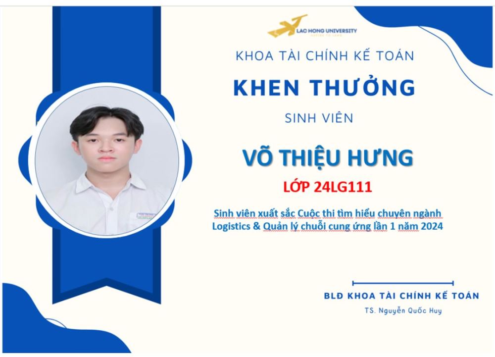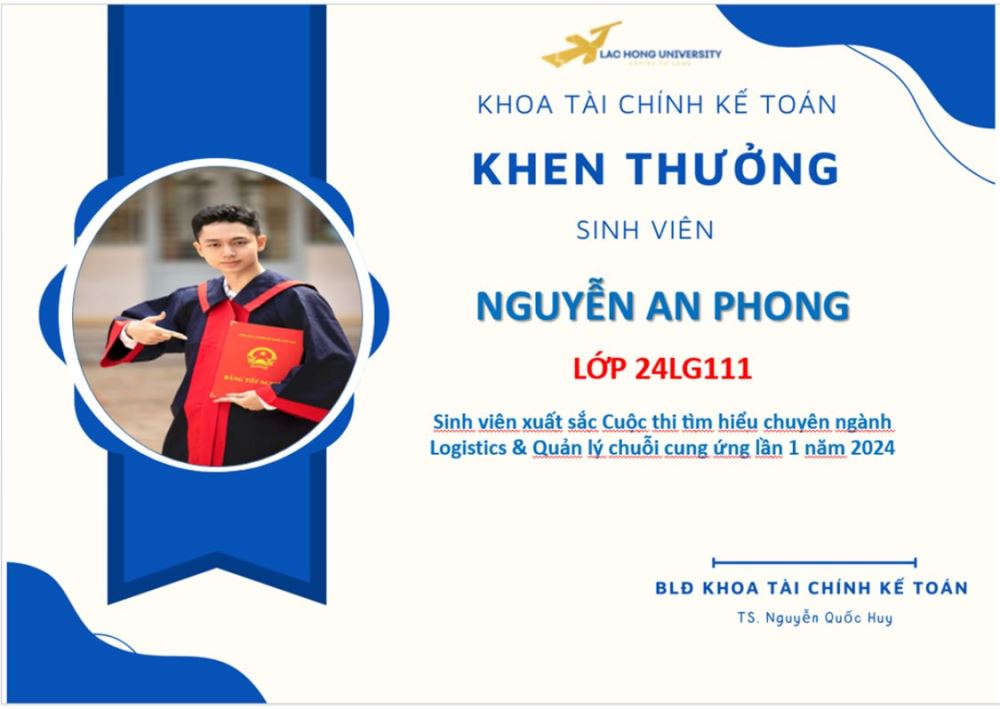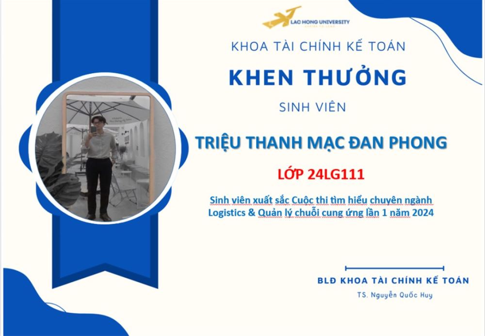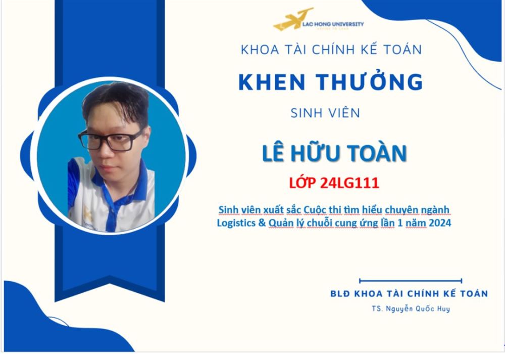 Nhằm chào đón và tạo sân chơi học thuật bổ ích cho các bạn tân sinh viên, Khoa Tài chính - Kế toán, Trường Đại học Lạc Hồng đã tổ chức cuộc thi "Tìm hiểu chuyên ngành Logistics và quản lý chuỗi cung ứng" tuần 1 năm 2024. Cuộc thi không chỉ mang lại cơ hội tiếp cận kiến thức mới mà còn giúp các bạn sinh viên có cái nhìn sâu sắc hơn về ngành học mình theo đuổi, từ đó định hướng rõ ràng cho hành trình học tập sắp tới.