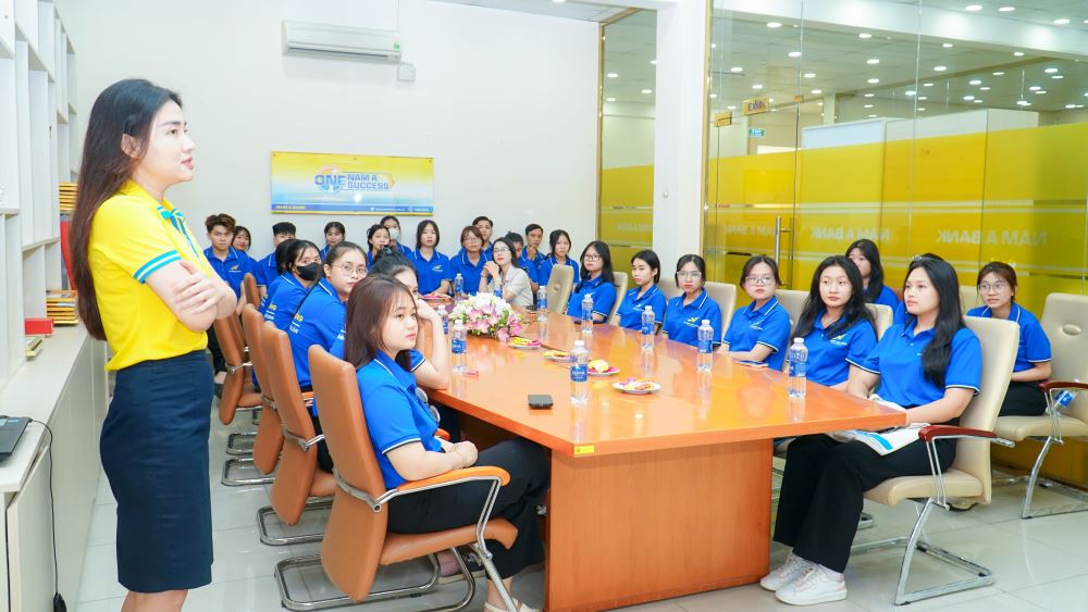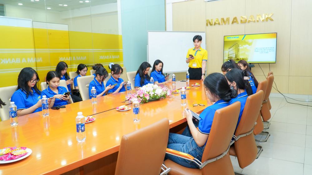Tại buổi tham quan, các sinh viên được đội ngũ chuyên gia tại Nam Á Bank giới thiệu chi tiết về mô hình tổ chức, các sản phẩm và dịch vụ ngân hàng. Qua đó, các em hiểu rõ hơn về các dịch vụ tài chính từ cho vay, gửi tiết kiệm đến các giải pháp thanh toán và quản lý tài khoản. Nhờ sự chia sẻ tận tâm từ các cán bộ ngân hàng, sinh viên đã có cái nhìn toàn diện hơn về vai trò của ngân hàng trong việc phục vụ khách hàng cá nhân và doanh nghiệp.