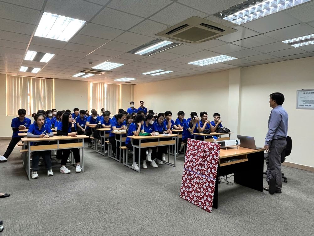 Đặc biệt, trong buổi giao lưu và thảo luận, đại diện Cảng SP-PSA đã giải đáp nhiều câu hỏi thú vị từ sinh viên về các vấn đề xoay quanh tối ưu hóa logistics, ứng dụng công nghệ trong quản lý cảng, và cơ hội nghề nghiệp trong lĩnh vực này. Phần thảo luận không chỉ mở rộng kiến thức mà còn khơi dậy niềm đam mê và định hướng nghề nghiệp cho các bạn trẻ.