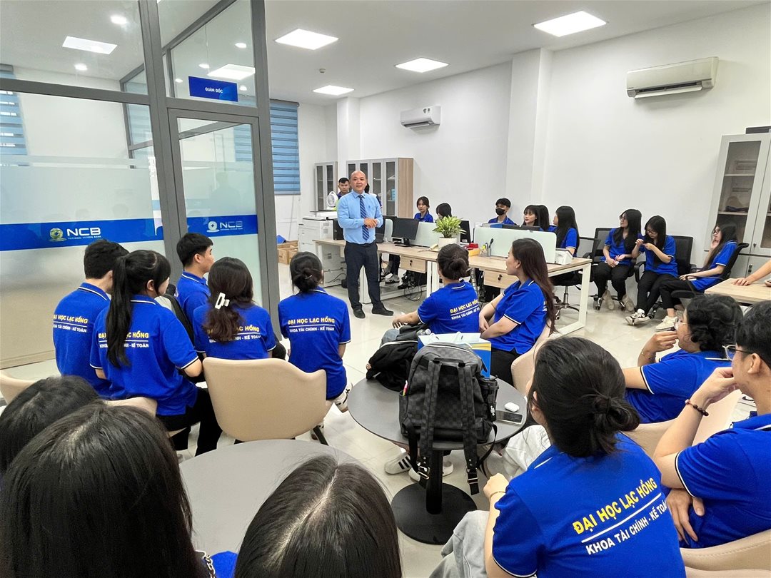 Chiều ngày 15/9/2025, Khoa Tài chính – Kế toán, Trường Đại học Lạc Hồng đã tổ chức chuyến tham quan và học tập thực tế cho 58 sinh viên lớp 23NH111 ngành Tài chính – Ngân hàng tại Ngân hàng TMCP Quốc Dân – Chi nhánh Biên Hòa (701 Phạm Văn Thuận, Tam Hiệp, tỉnh Đồng Nai).