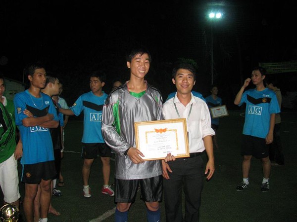 Đồng chí Phan Thành Nam - Bí thư Đoàn khoa TC-KT trao giải Thủ môn xuất sắc nhất