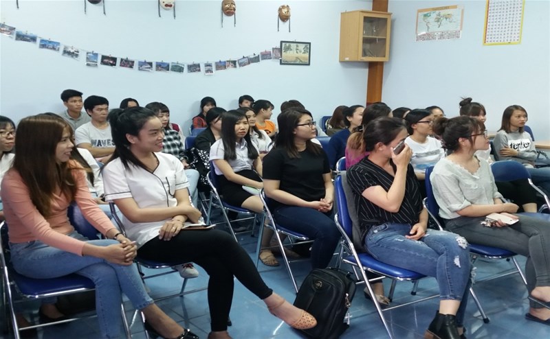 Hình 2: Các bạn sinh viên chăm chú lắng nghe trong buổi giao lưu