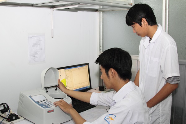 Sinh viên kiểm tra số liệu khoa học tại phòng thí nghiệm