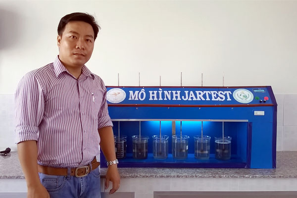 ThS. Lê Phú Đông bên mô hình Jartest chế tạo