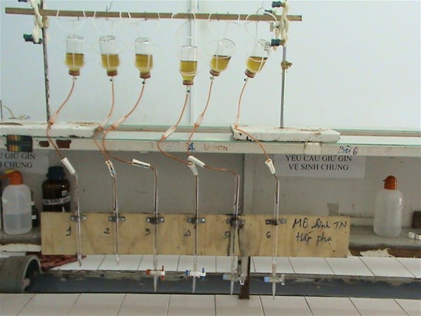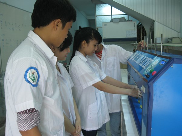 Sinh viên học thực hành trên mô hình Jartest chế tạo