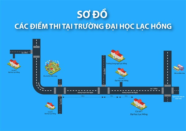 Sơ đồ di chuyển tại 5 điểm thi do Đại học Lạc Hồng phụ trách