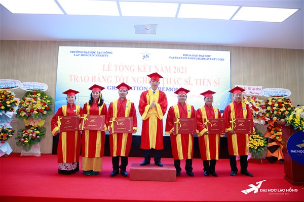 Trải qua hơn 02 năm, ảnh hưởng bởi dịch Covid-19, mọi hoạt động ngưng trệ, công tác dạy và học gặp không ít khó khăn khi phải thực hiện dưới hình thức online. Tuy nhiên, thầy và trò khoa Sau đại học, Trường Đại học Lạc Hồng đã cùng nhau vượt qua và hoàn thành tốt nhiệm vụ của mình. Để đánh dấu thành quả sau 02 năm miệt mài học tập và nghiên cứu của các học viên, Trường Đại học Lạc Hồng đã long trọng tổ chức Lễ trao bằng tốt nghiệp đến 11 Tiến sĩ và 125 Thạc sĩ trong niềm vui hân hoan, phấn khởi của Thầy và trò Trường Đại học Lạc Hồng.