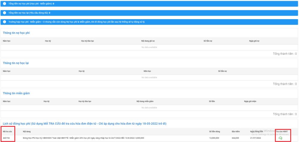 - Tân sinh viên ghi nhớ “Mã tra cứu” trên trang thông tin học phí.