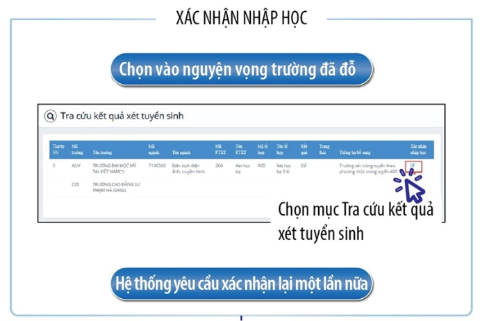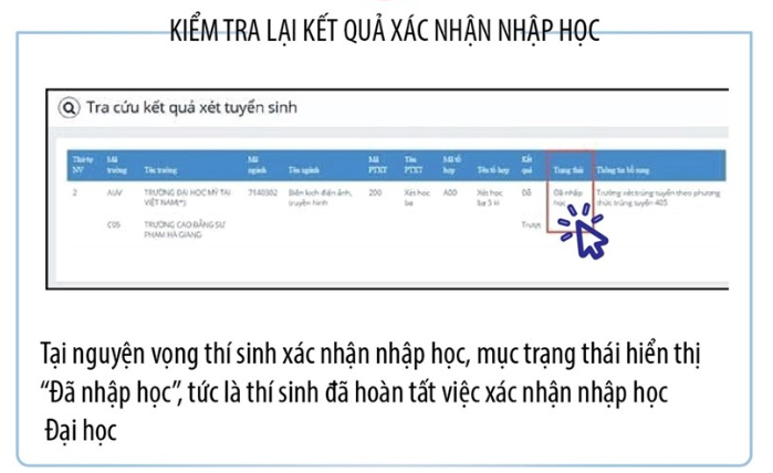 • - Bước 6: Kiểm tra lại kết quả xác nhận nhập học