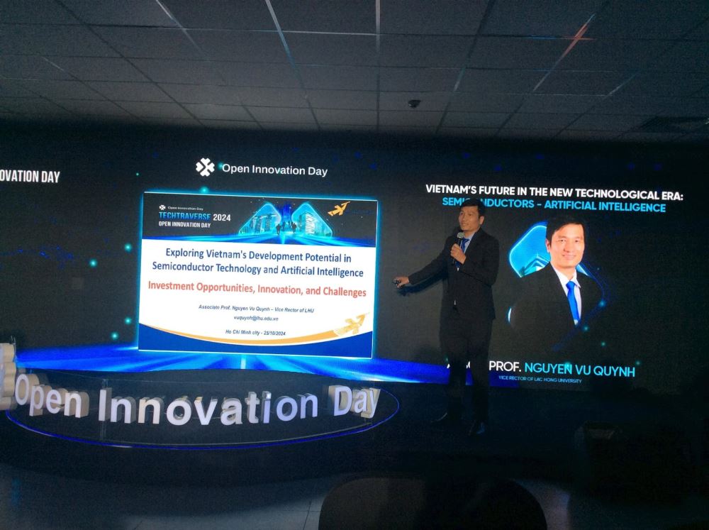Tại hội thảo chủ đề “Tương lai Việt Nam trong kỷ nguyên công nghệ mới: Bán dẫn - Trí tuệ nhân tạo” trong khuôn khổ “Ngày đổi mới sáng tạo mở 2024” tại Thành phố Hồ Chí Minh, PGS,TS Nguyễn Vũ Quỳnh – Phó Hiệu trưởng Trường Đại học Lạc Hồng (LHU) nhấn mạnh: Mặc dù, Việt Nam là nước đi sau trong cuộc đua lĩnh vực vi mạch bán dẫn, nhưng được đánh giá là có tiềm năng to lớn và hội tụ đủ các điều kiện để nhanh chóng phát triển hệ sinh thái bán dẫn cũng như tham gia chuỗi cung ứng toàn cầu.