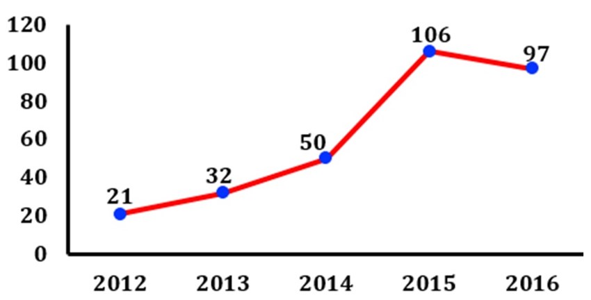 The training duration of the program is 4.5 years. Students graduated from the program are awarded the degree of “Bachelor of Electrical and Electronics Engineering Technology”. Bellow Figure brief presents the number of students graduated from the program in the period between 2012 and 2016.