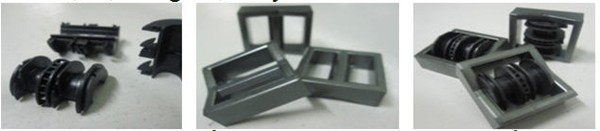 Đặc điểm chi tiết bobbin có các chốt định vị nhỏ được thiết kế so le nhau. Do đó phải phân biệt đúng chiều để lắp ráp ăn khớp với nhau. Chi tiết Bobbin nhỏ và có các rãnh định vị hẹp gần 0,3mm nên khó định tâm được vào chi tiết bobbin phía đối xứng qua core. Từ đó phương án dùng xi lanh để tác dụng lực ép cho việc lắp kết hợp với lòng khuôn định vị cho hai chi tiết bobbin trên và dưới đúng vị trí để quá trình lắp diễn ra một cách chính xác và nhanh nhất.