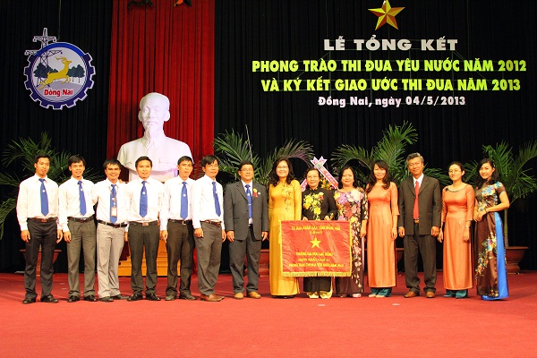 Hình 4: Tập thể lãnh đạo nhà trường tại lễ kỷ niệm 65 năm Ngày Bác Hồ kêu gọi thi đua yêu nước