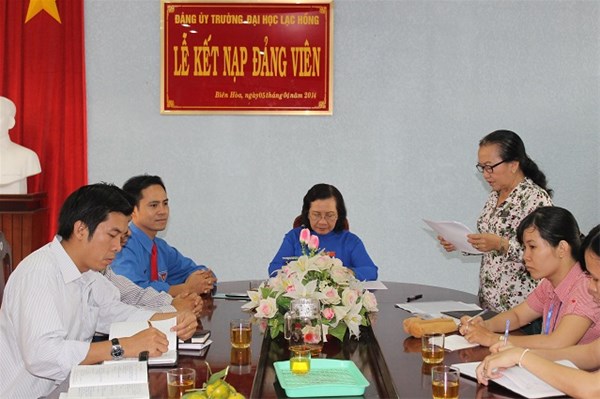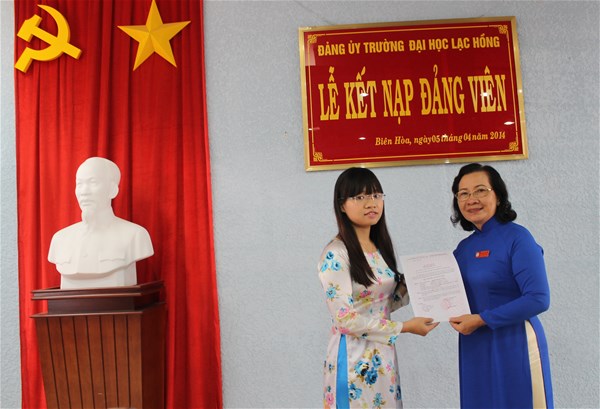 Được sự thống nhất của Ban thường vụ Đảng ủy Khối, Đảng ủy trường Đại học Lạc Hồng, vào lúc 8h00 ngày 05 tháng 04 năm 2014 tại phòng họp CS1 trường Đại học Lạc Hồng, Chi bộ 6 đã tiến hành tổ chức lễ kết nạp Đảng viên cho quần chúng xuất sắc Nguyễn Thị Mai Phương vào Đảng Cộng sản Việt Nam; Đến dự buổi lễ kết nạp có Đ/c Lê Sơn Quang - UV.BTV Đảng ủy trường - Bí thư đoàn trường, đ/c Trần Tiến – Chủ tịch Hội sinh viên trường – Phó bí thư thường trực Đoàn trường, đại diện Đoàn - Hội sinh viên khoa Ngôn ngữ Anh cùng toàn thể Đảng viên trong Chi bộ.