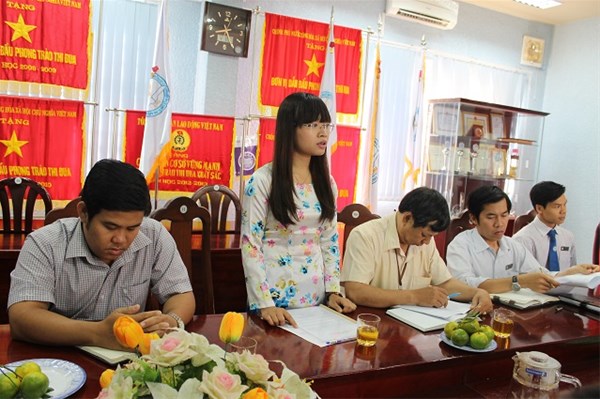 Hình 2: Đồng chí Lê Thị Hiếu - Phó bí thư chi bộ thông qua những nội dung trong buổi lễ.