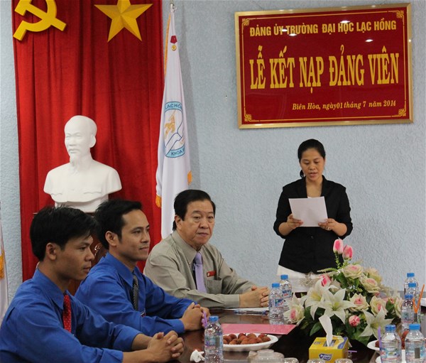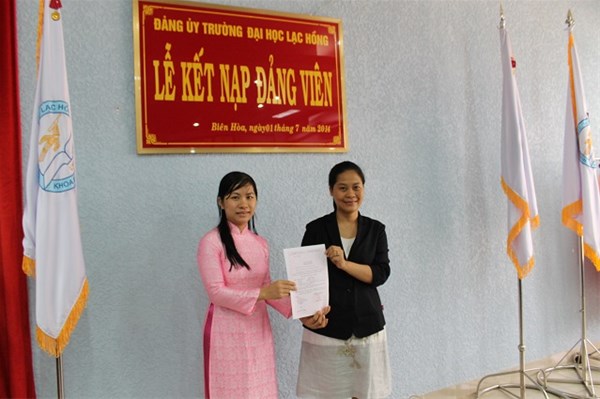 Được sự thống nhất của Đảng ủy trường Đại học Lạc Hồng, vào lúc 10h00 ngày 01/7/2014 tại phòng họp CS1 trường Đại học Lạc Hồng, Chi bộ 09 đã tiến hành tổ chức lễ kết nạp Đảng viên cho 03 quần chúng xuất sắc Đoàn Thị Tuyết Lê, Tô Thị Lan Phương và Nguyễn Thị Trúc Mai vào Đảng Cộng sản Việt Nam;