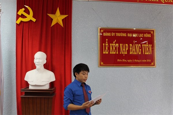 Được sự thống nhất của Đảng ủy trường Đại học Lạc Hồng, vào lúc 11h00 ngày 05/8/2014 tại phòng họp CS1 trường Đại học Lạc Hồng, Chi bộ 09 đã tiến hành tổ chức lễ kết nạp Đảng viên cho quần chúng xuất sắc Nguyễn Xuân Chương vào Đảng Cộng sản Việt Nam;