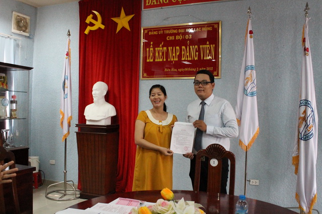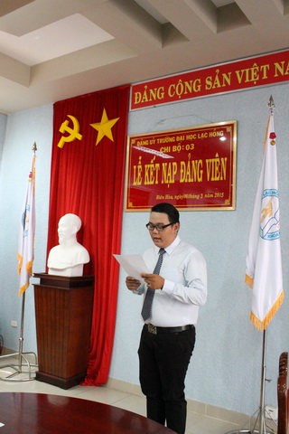 Căn cứ Quyết định của Đảng ủy khối các cơ quan tỉnh về việc kết nạp đồng chí Nguyễn Hồng Quý vào Đảng Cộng sản Việt Nam, được sự thống nhất của Ban Thường vụ Đảng ủy Khối các cơ quan tỉnh Đồng Nai, Đảng ủy trường Đại học Lạc Hồng, vào lúc 10h00 ngày 06 tháng 3 năm 2015 tại phòng họp CS1 trường Đại học Lạc Hồng, chi bộ 03 đã tiến hành tổ chức lễ kết nạp đảng viên cho quần chúng Nguyễn Hồng Quý vào Đảng Cộng sản Việt Nam; đến dự buổi lễ kết nạp có NGND.TS. Đỗ Hữu Tài – Phó Bí thư Đảng ủy, Hiệu trưởng nhà trường cùng toàn thể đảng viên trong chi bộ 03.