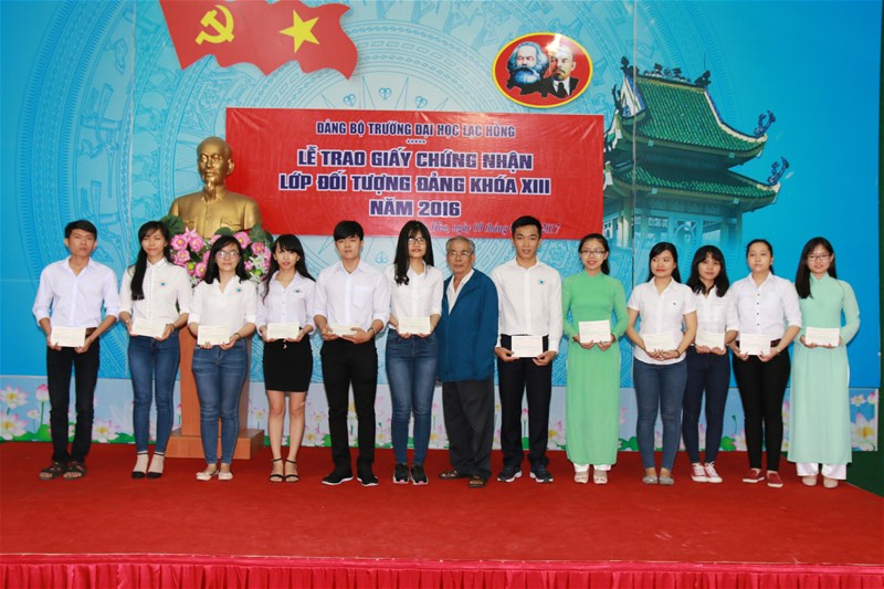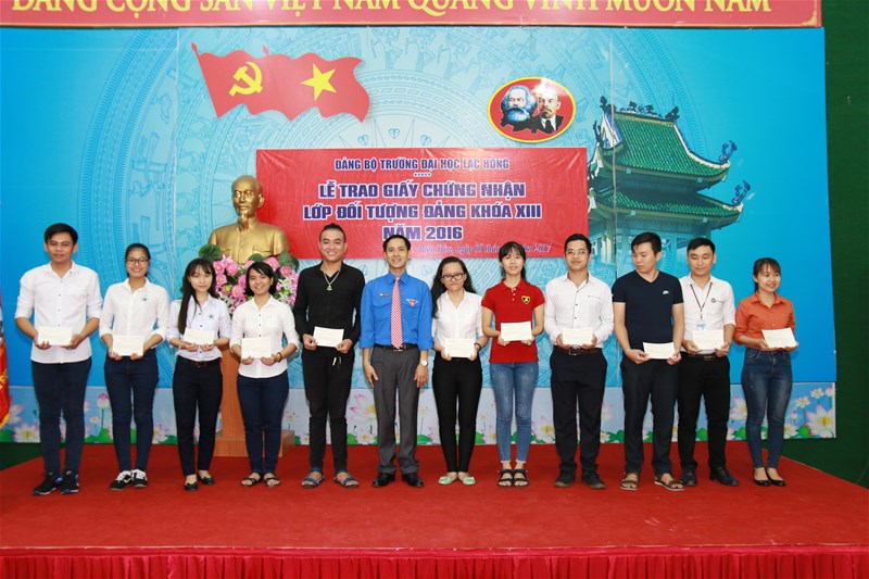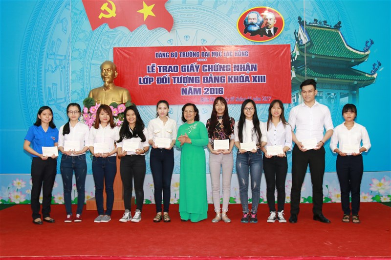 Căn cứ kết quả từ Ban Tuyên giáo Đảng ủy Khối về bài thu hoạch lớp đối tượng Đảng khóa XIII trường Đại học Lạc Hồng. Sáng ngày 09 tháng 01 năm 2017, tại Văn Miếu Trấn Biên, Đảng ủy trường Đại học Lạc Hồng tổ chức buổi Lễ trao giấy chứng nhận cho quần chúng ưu tú, xuất sắc hoàn thành khóa học lớp học.