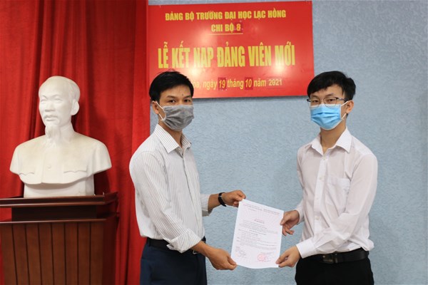 Được sự đồng ý của Đảng ủy khối các cơ quan tỉnh Đồng Nai, Ban Thường vụ Đảng ủy trường; ngày 19/10/2021, tại phòng họp, Cơ sở 1; Chi bộ 8 đã tổ chức Lễ kết nạp đảng viên cho quần chúng Bùi Văn Thành vào Đảng Cộng sản Việt Nam, đến dự buổi lễ kết nạp có Đ/c Nguyễn Trùng Phương – Bí thư Đảng ủy cùng toàn thể đảng viên trong Chi bộ 8.