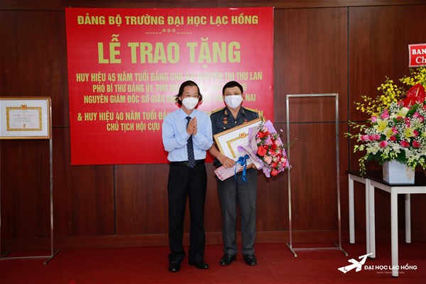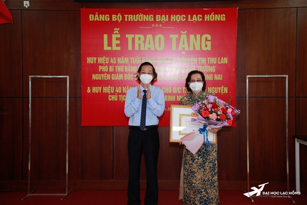 Tại buổi Lễ trao huy hiệu Đảng lần này, Đảng ủy Trường Đại học Lạc Hồng đã tổ chức trao Huy hiệu 45 năm tuổi Đảng cho Đ/c Nguyễn Thị Thu Lan - Phó Bí thư Đảng ủy trường, Phó Hiệu trưởng nhà trường; Nguyên Giám đốc sở Giáo dục & Đào tạo, Nguyên Giám đốc Sở Ngoại vụ tỉnh Đồng NaiHuy hiệu 40 năm Tuổi Đảng cho Đ/c Trần Văn Nguyện - Chủ tịch Hội Cựu chiến binh nhà trường.